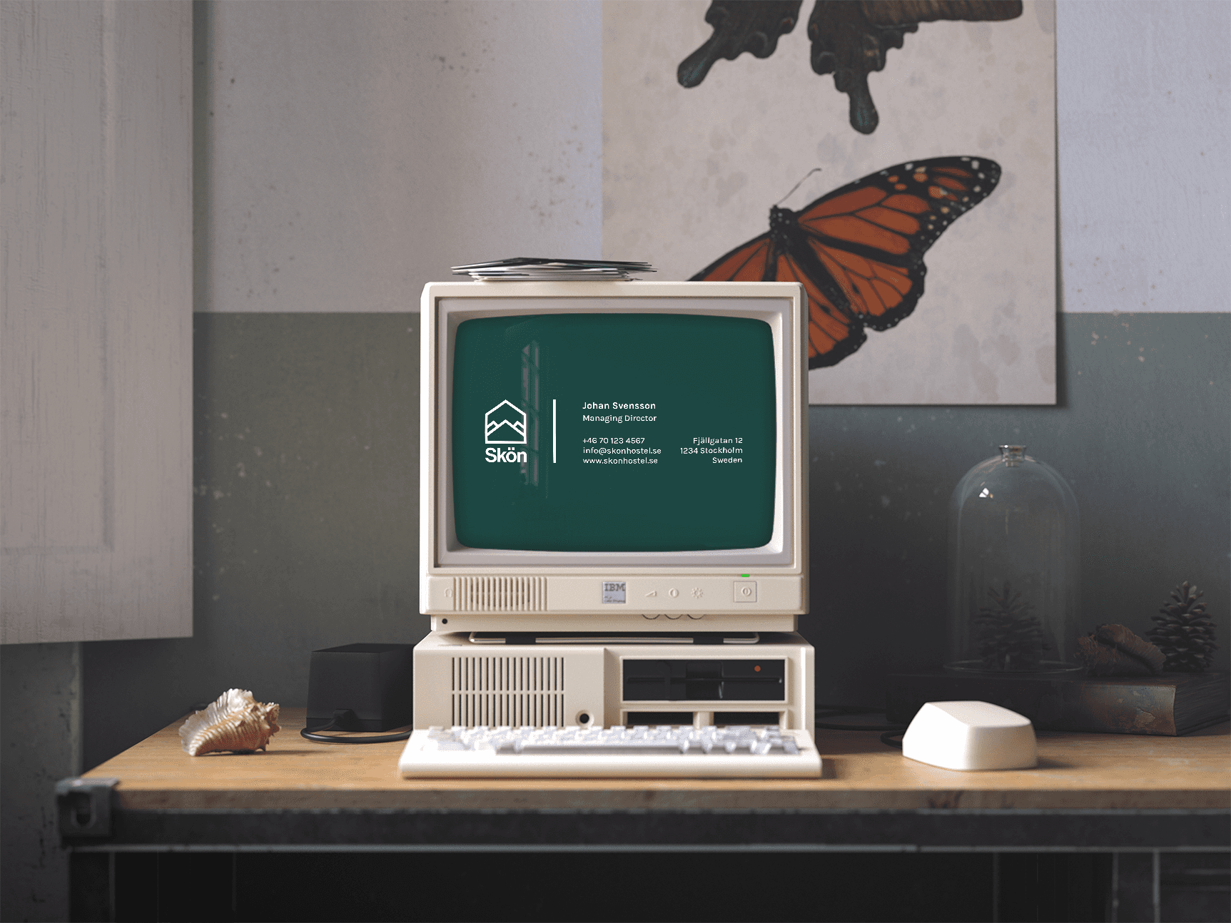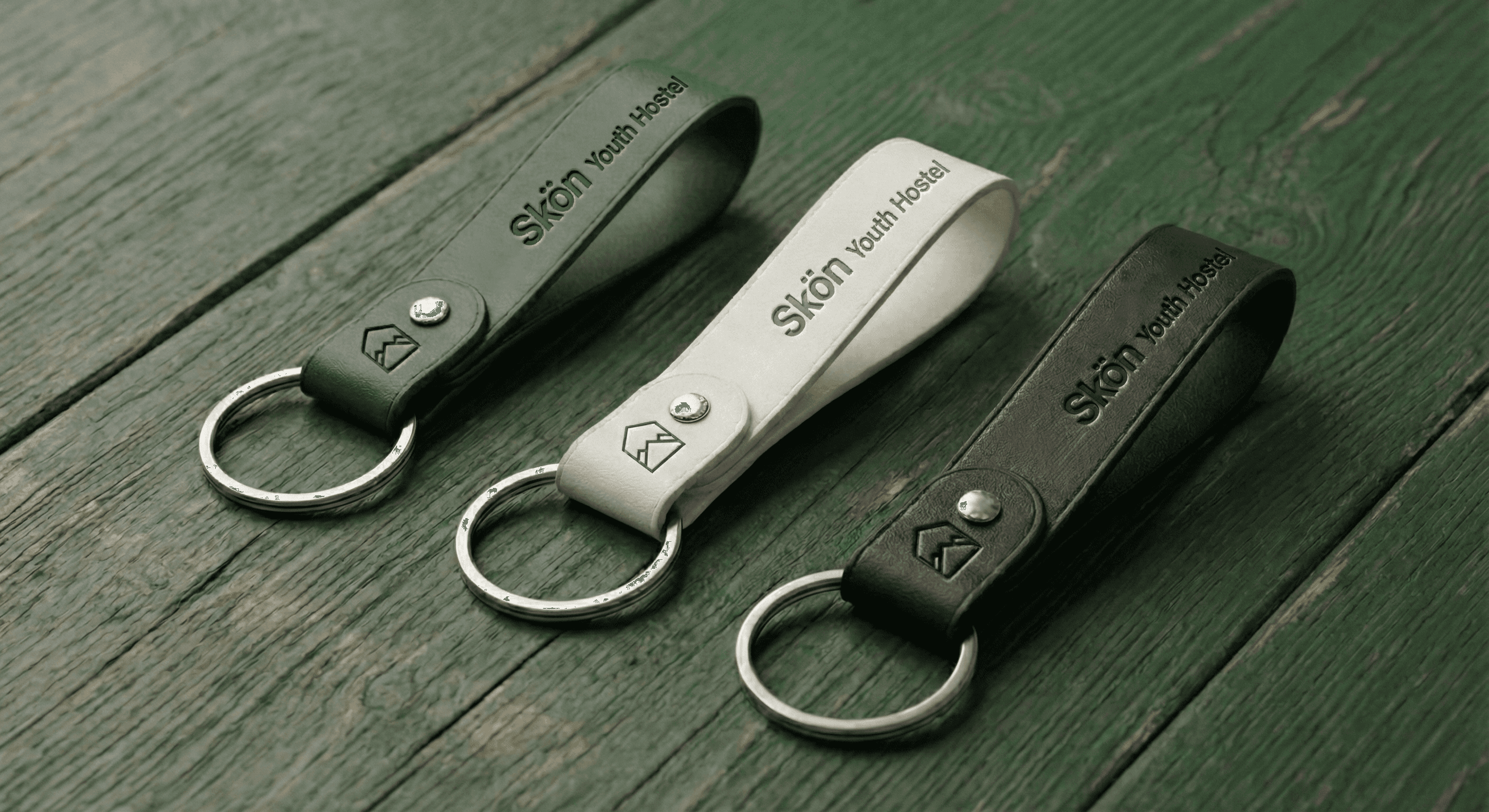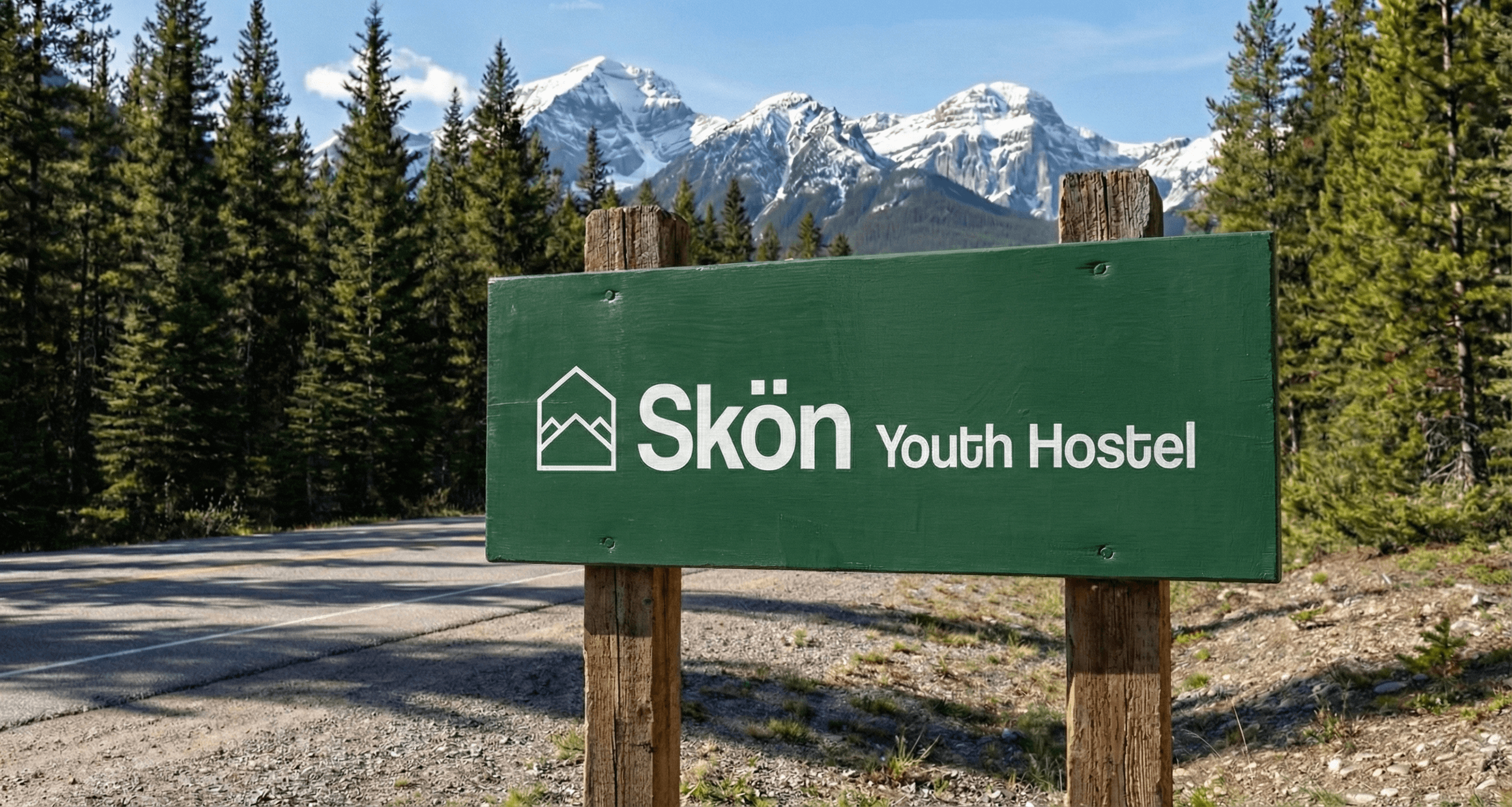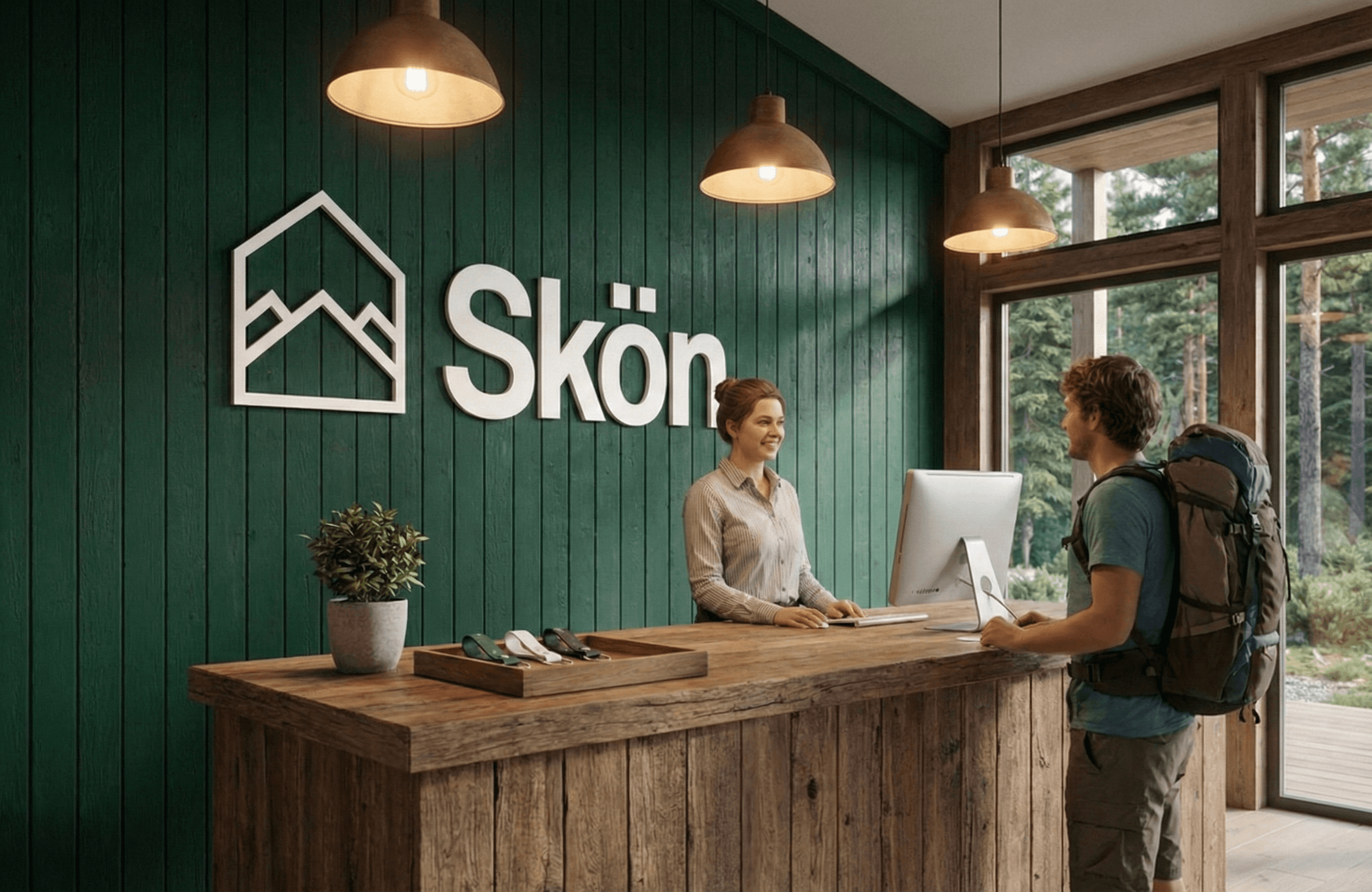 Skön is a youth hostel that embodies the Scandinavian spirit of simplicity and nature. I designed a minimal brand identity centered around a geometric logo that merges a protective shelter with mountain peaks. Using a deep forest green palette and a stylized pine tree pattern, the visual language captures the essence of the outdoors while maintaining a clean and modern look.